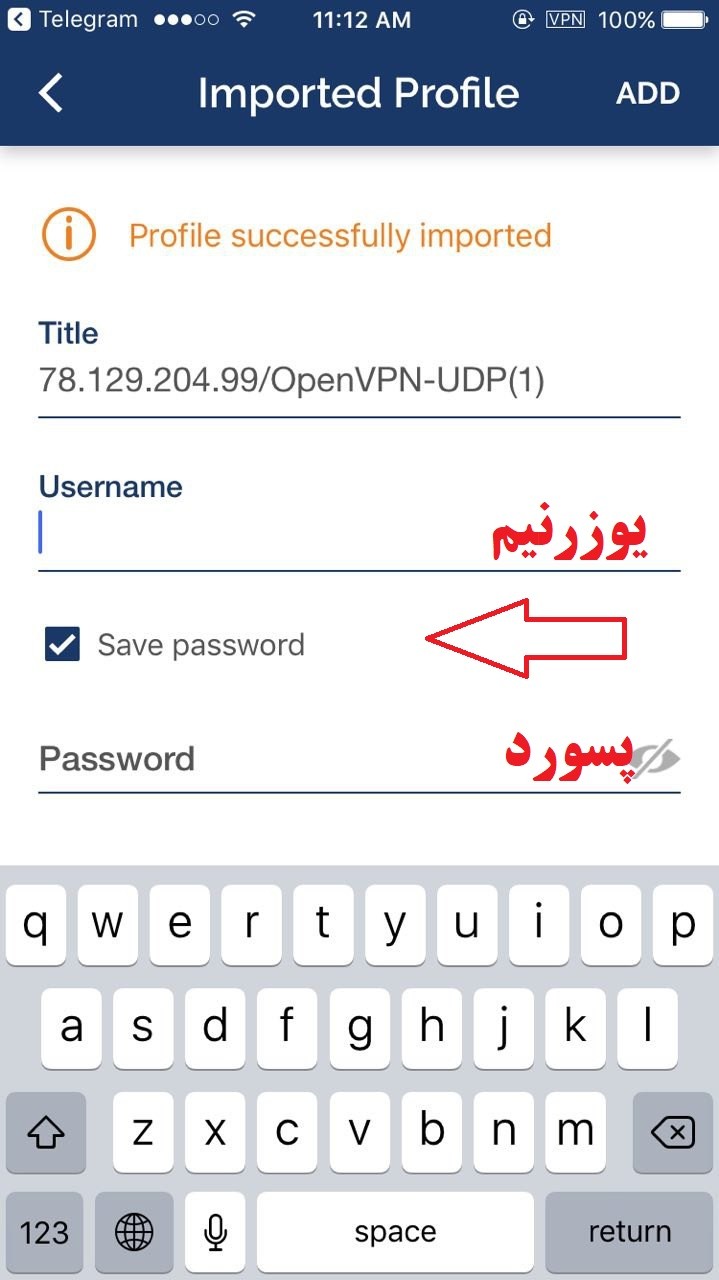 یوزرنیم دریافتی خود را در قسمت های مشخص شد وارد کنید و دکمه save password  را بزنید